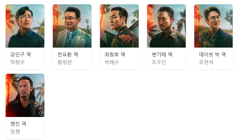 황정민 - 전요환 역, 코카인 마약 밀매꾼이자 수리남의 한국인 목사로 둔갑한 인물입니다.