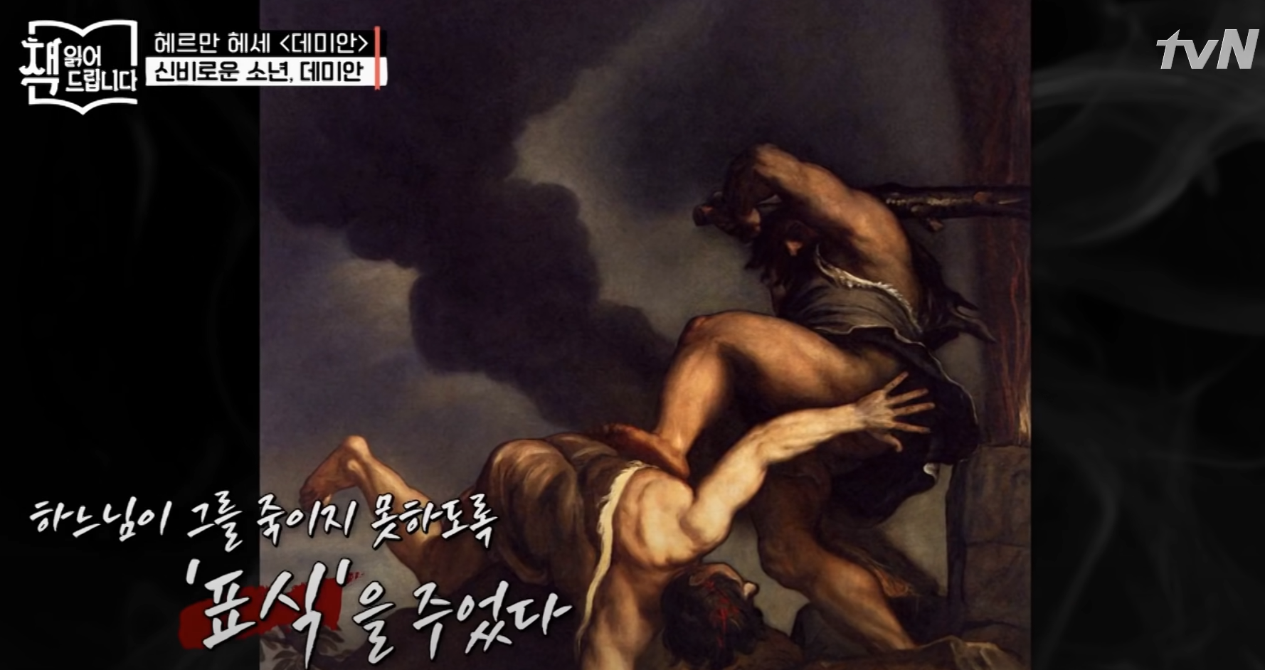 데미안이 싱클레어에게 성서이야기 중 ‘카인과 아벨’을 다른 관점에서 해석한 것을 들려주었습니다.